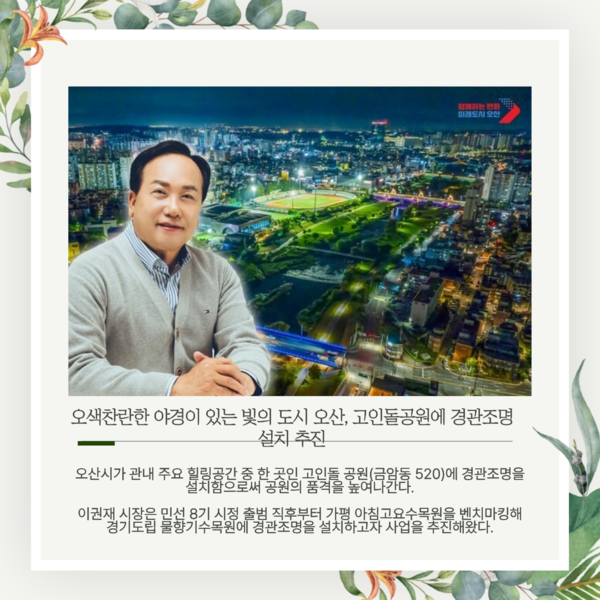 오색찬란한 야경이 있는 빛의 도시 오산, 고인돌공원에 경관조명 설치 추진