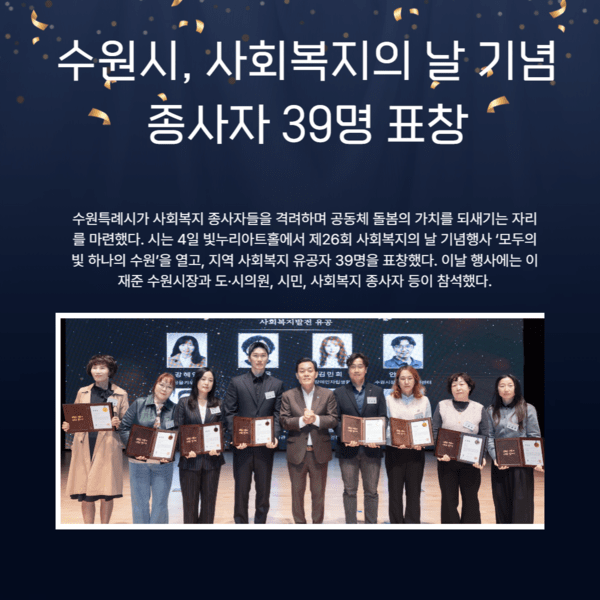 수원시, 사회복지의 날 기념...종사자 39명 표창